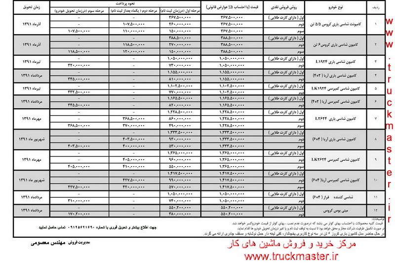 آغاز فروش اقساطی محصولات ایران خودرو دیزل لطفا جدول زیر را مشاهده نمایید