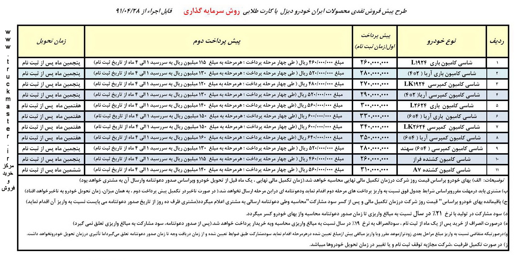 پیش فروش نقدی محصولات شرکت ایران خودرو دیزل به روش سرمایه گذاری