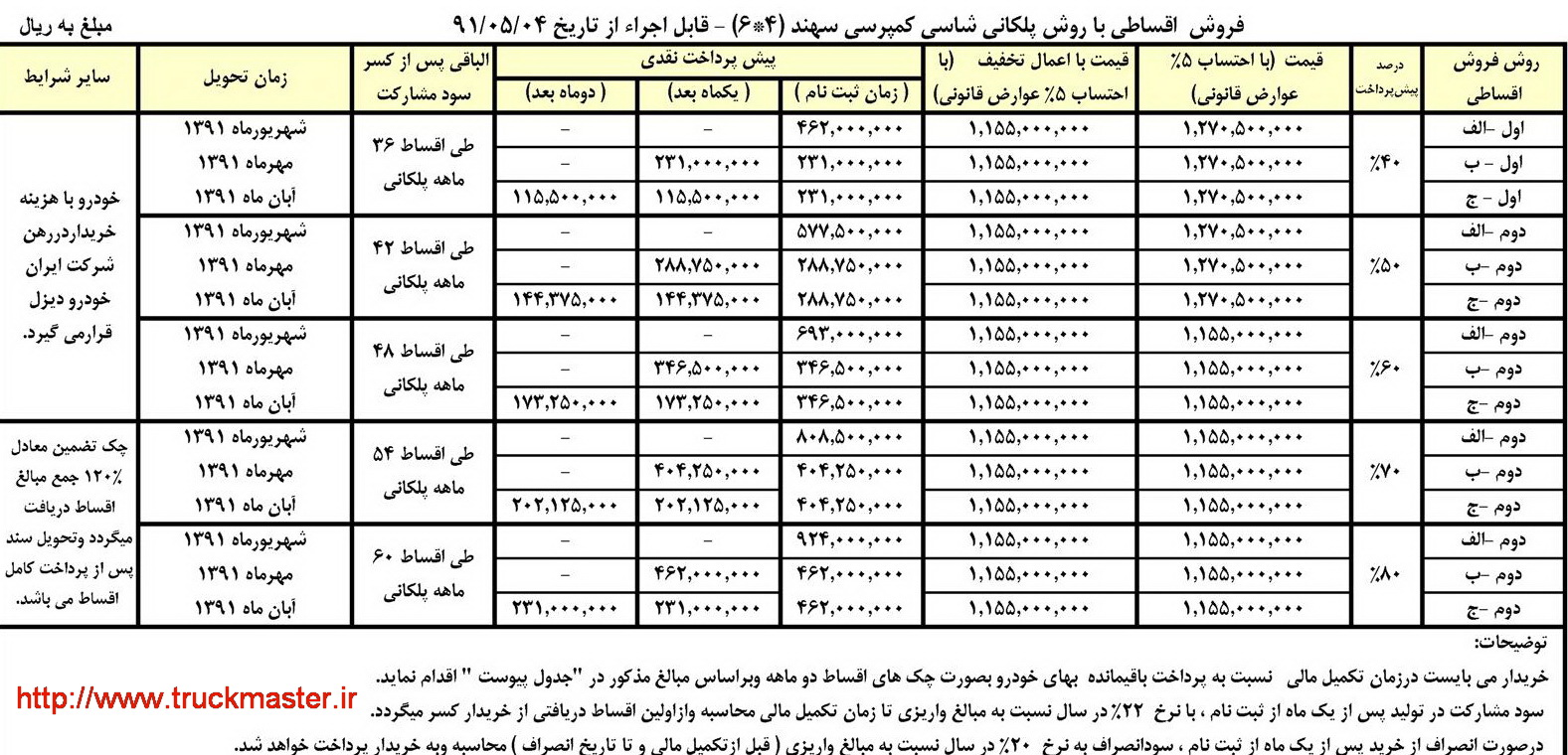 شرایط فروش اقساطی روش پلکانی شاسی کمپرسی سهند(4*6)